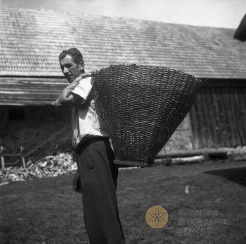 Koš za rezanco in mrvo nosit živini. Lastnik Janez Šajn - pri Brlogarju, Male Lašče 26.