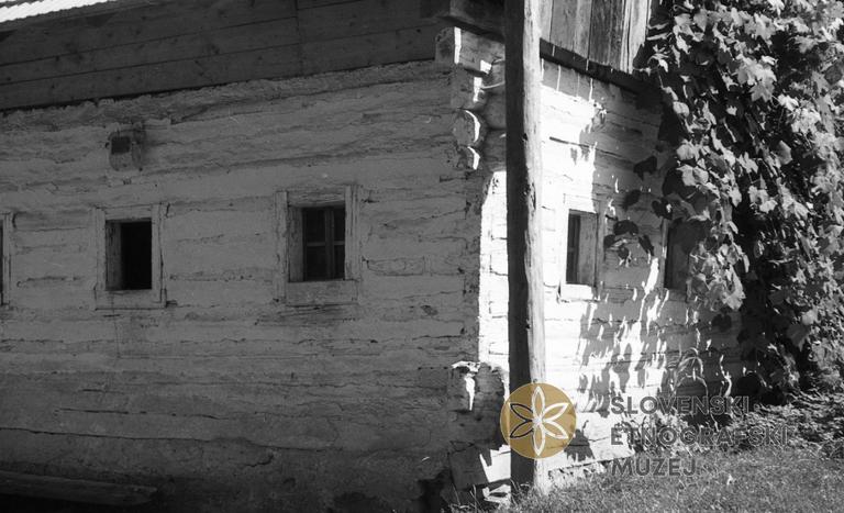 Hiša iz leta 1747, detajl. V glavnem že prenovljena, le lesena "hiša" je še stara. Lastnik Jože Brcar - pri Jožmanu, Hom 5.