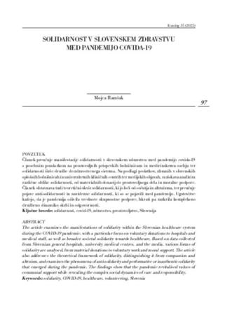 Članek preučuje manifestacije solidarnosti v slovenskem zdravstvu med pandemijo covida-19 s poseb